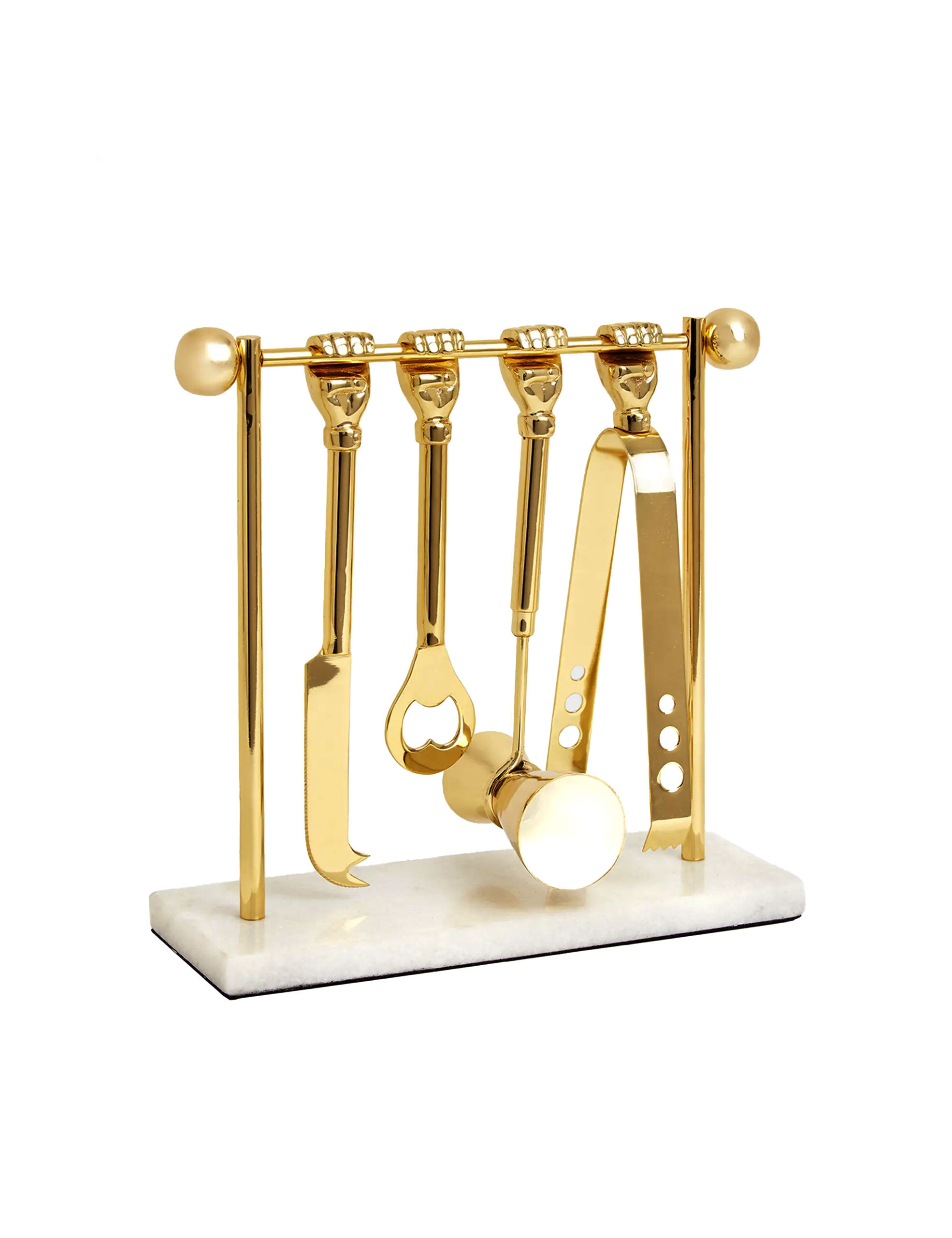 The gold finish and sculptural design make this set feel like a small dose of fun for anyone who actually enjoys hosting.